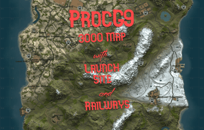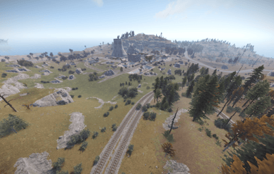 Procedural 3000 size map edited with large monuments and above ground railway network