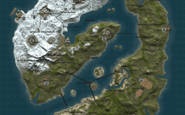 Right island featuring mostly desert biome holds most hard difficulty monuments making it difficult to survive due to the harsh enviroment and difficulty of getting loot compared to the other islands.