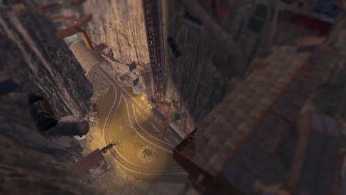 Directly under the city there is a railway and an unloading station. But be careful, the inhabitants of the city do not care about what is happening below..