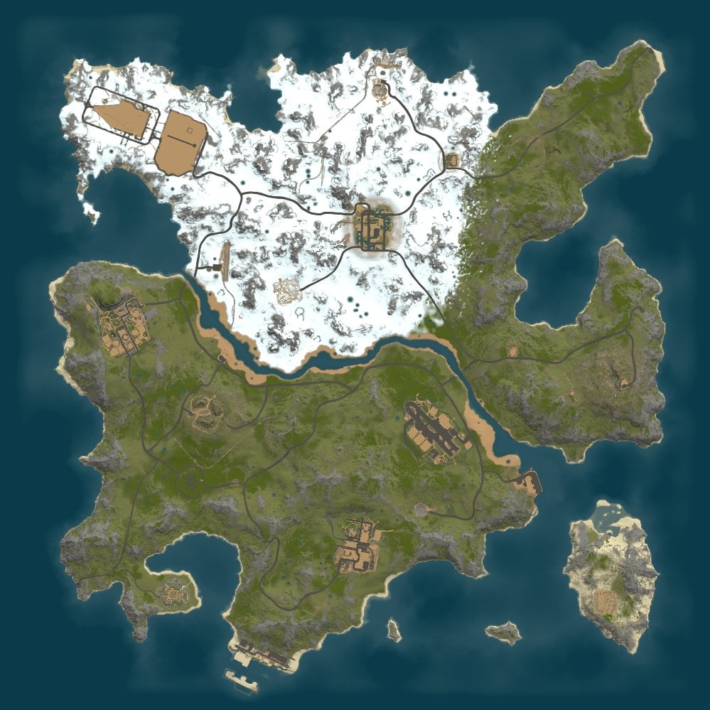 There are two main large custom monuments on the map as well as a range of smaller monuments as well as a set of default regular monuments and the space saving military tunnels buried deep underground and even two Bradley's to fight across the fully custom terrain that brings a unique look to your server.