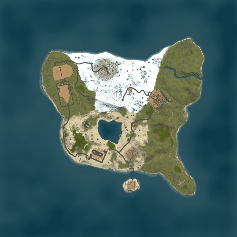 Research Island is a small, 3000 sized map. It contains all of the main procedural monument which normally can't be generated in such a small map. With this there are also a bunch of small, unmarked points of interest. This gives players a variety of things to do, keeping them active.