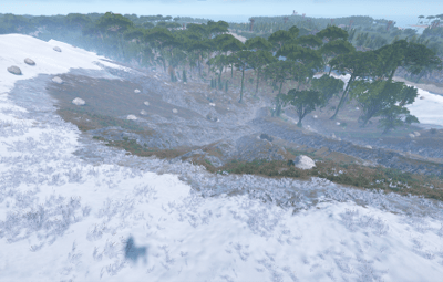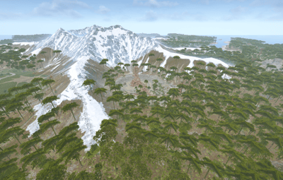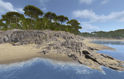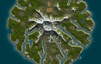 The towering mountains are rich in ore — mine resources, build your base. But beware: the ancient volcano at the island’s heart may awaken at any moment.