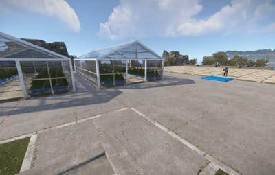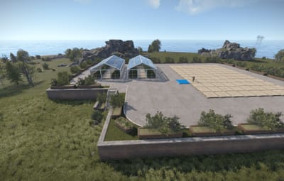 Two elegant glass structures on a raised platform — ideal for farms or base clusters.