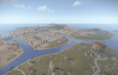 Riverway Isle is a custom Rust map designed for tactical movement, immersive travel, and creative construction. Built around a dynamic river system and fully encircled by land and rail routes, it offers a balanced and richly interactive environment for any type of server.