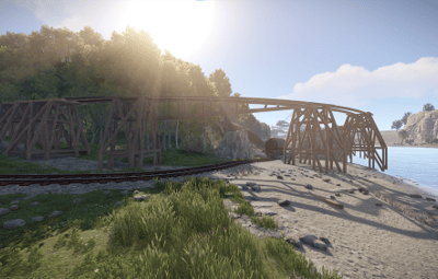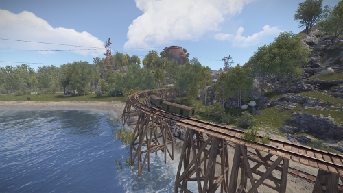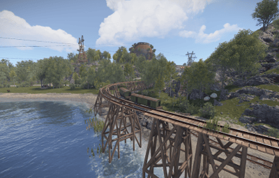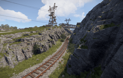 The underground railway has 1 exit to each island, 1 exit to the surface of the military base and 1 exit to the underground part of the military base. The elevated and underground railways are connected. In some places, the railway runs along the edge of steep cliffs, be careful not to fall.