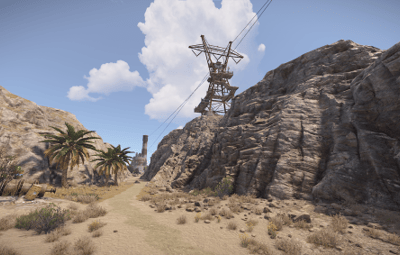 All powerlines are combined into one large network of cable cars. From anywhere on the map you can get to both the outpost and the military base. Therefore, it is not necessary to use a boat to cross the big river in the middle of the map
