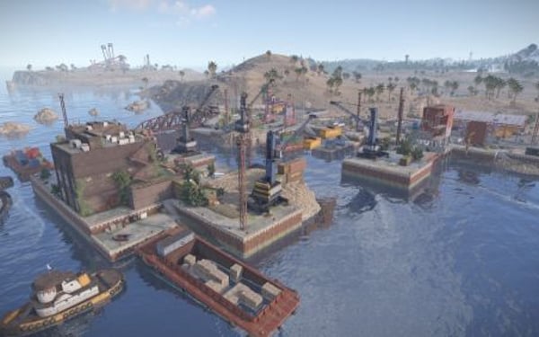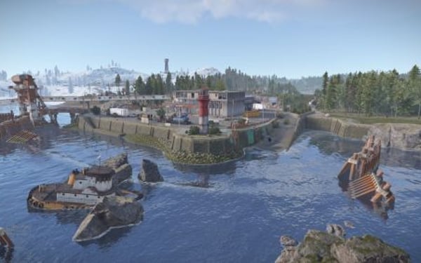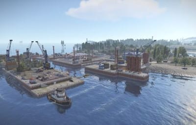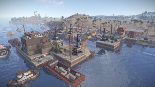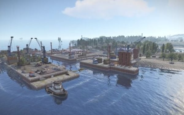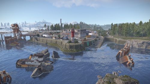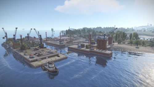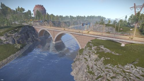 Added landscape places on the map in the form of reservoirs, custom rock formations, a large automobile bridge across the bay, under which a tugboat will easily pass.