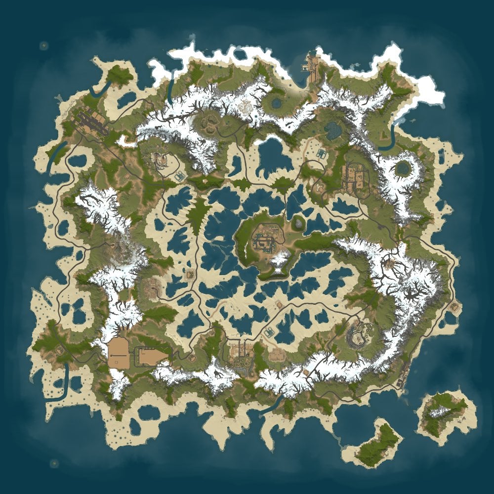 Seren Island is a 4k custom map. That was made and splat painted in World Creator, because of it map have barren vibes. Big open spaces in the middle of the map with many lakes. Wider beaches for clan bases or raidable base plugin to work without problems. You can find 2 bigger and few smaller monuments on the map. Underground rail system is connected to both Oil rigs.