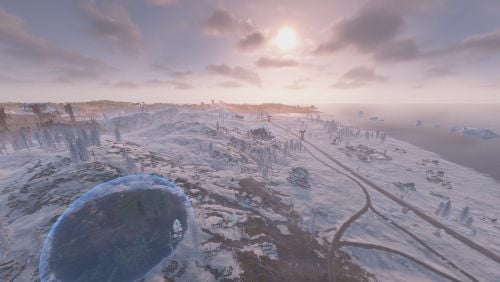 In the winter biome, there are "Spheres of Life" — unique zones with a temperate biom that are convenient for building a base.