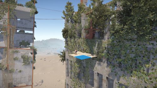 The zipline helps you move faster; it goes around the entire island. There is a lot of ore on rocks and stones sticking out of the ground, including in the desert biome, although less.