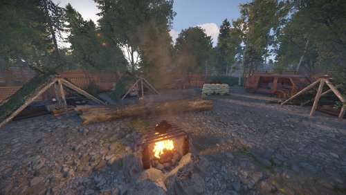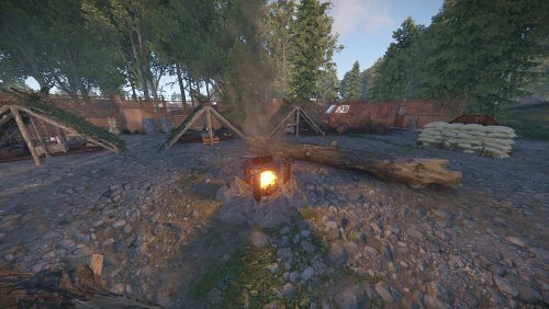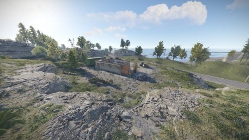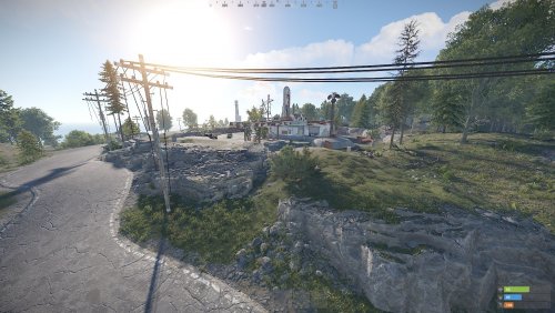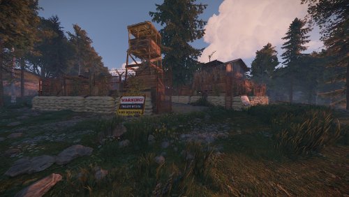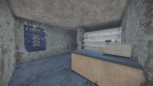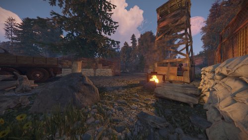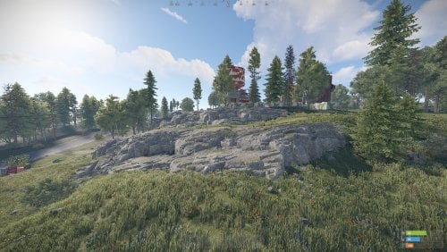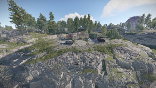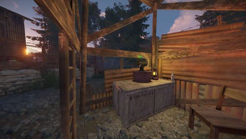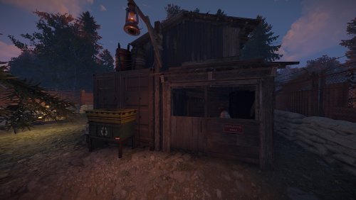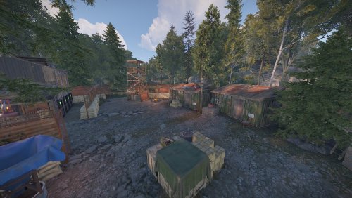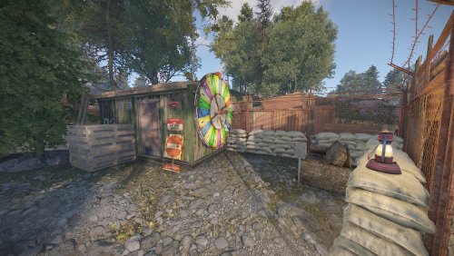 Outpost vending machines, bandit camp fortune wheel, airwolf (NPC to buy helicopters), marketplace (to buy stuff with the drone), recycler, Barbeque - Workbench - Research - Repair Bench in the cabins