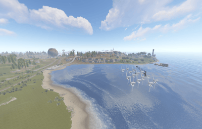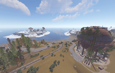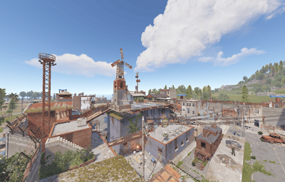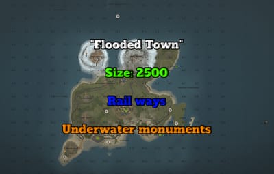 ‘Floaded Town’ is a small map with a size of 2500 and with a lot of attractions placed around the map. You won't find huge, open fields or unoccupied areas here, but at the same time the map is very picturesque and full of beauty, as you can see in the photo above. Another distinctive feature of the map is that there are railways around it, which allows players to make their game more diverse. The biggest feature of the map is that it has monuments underwater for which you will need a diving suit with an oxygen tank, or underwater transport to get to these monuments, this will allow players to experience new impressions of the game as there will be not only ground shootings, but also underwater battles, which will make the game more diverse. Also on the map are some custom monuments that players will need to find. The map is optimised and will not load your hosting heavily, so don't hesitate and give your players a new taste of survival!