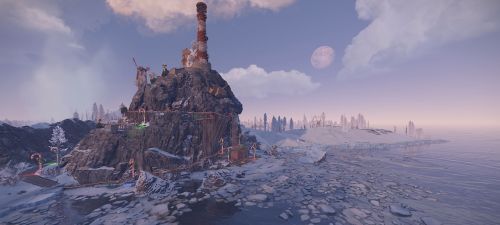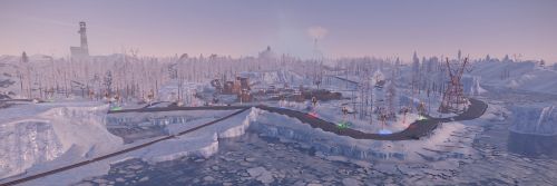 Between the mountain ranges you can find icebergs, frozen lakes, rivers, and small patches of fertile soil. And did I mention the ziplines? There's a few to say the least, spread across the entire Snowflake, there's no reason to worry about travel time across the tretherous terrain.