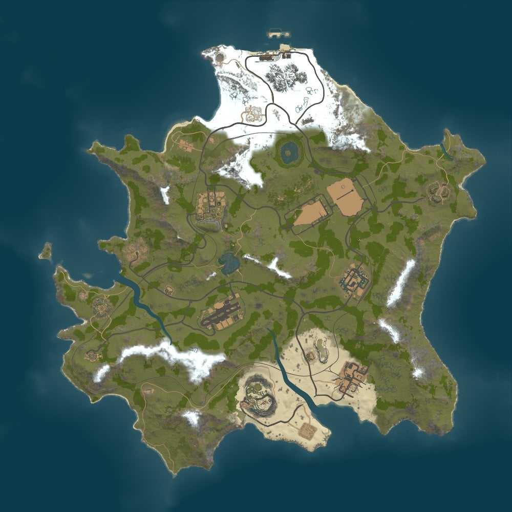 I present to your attention a map with a custom relief and standard monuments from Facepunch. The map is well optimized and therefore suitable for servers with a small amount of RAM. The number of objects is ~2800 pieces. Also, the map shows all the important monuments with the size of the map itself 3500. The presence of a railway and an underground metro network. And most importantly, this is a combined complex in which you can find vending machines from both a peaceful city and a city of bandits, as well as NPCs from whom you can take initial missions. Plus, there is a barn at the entrance to the city where you can buy a horse, and an additional branch of the railway has been laid on the outskirts of the city, along which trains with carts will appear.