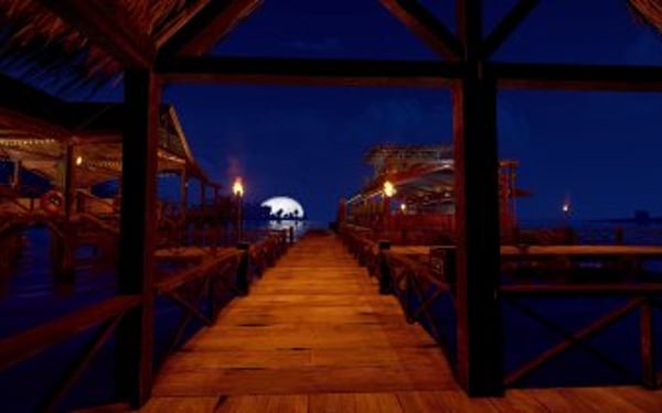 The resort is a great place to party, relax or talk business in the private poker room. This resort is divided in 3 parts. The main building with a bar, music scene and lounge. The second part is the floating casino. Onboard, players have access to a pool, hot tub, mini bar, slot machine, private poker room... There is a loot room locked with a puzzle. The 3rd part of the resort is the cabanas. Those tiny houses can be rented by players. Each cabanas comes with a radio and a unique light theme. They also have an unlimited electricity and can be furnished by the renter.