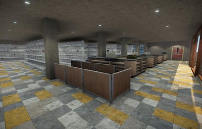 - A hospital ( 2 possible access floors guarded by scientisques)