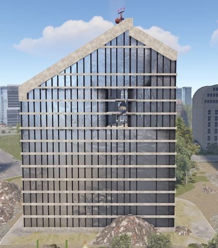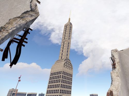 Abandoned Apartments X2 - A vertical monument designed to have players search individual apartment units through the building.