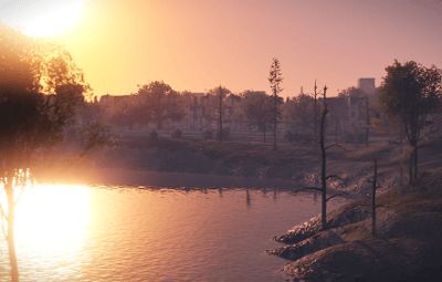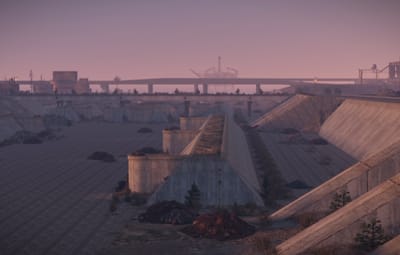 Nodedust Park - A desolate park with a dried up river and dead pine trees - Habitable.