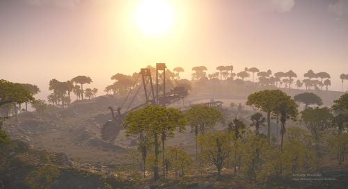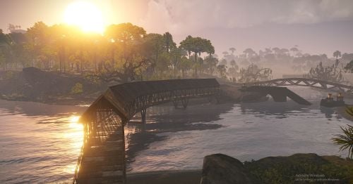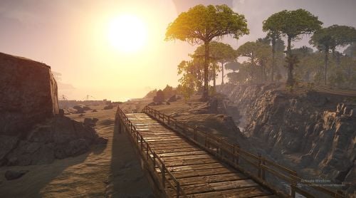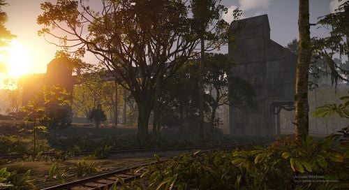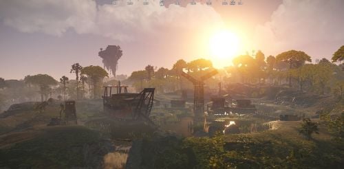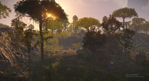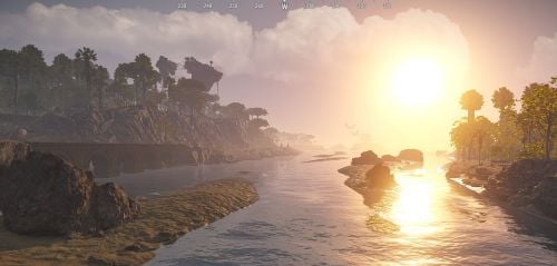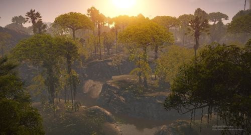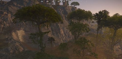 Ancient Ruins A - Two Entrances to the ruins exist, one through a large sinkhole and another through an underground river. This ruin houses a 'vault door' with a deadly pressure plate trap players must master to gain the loot inside.