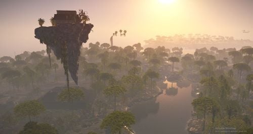 Floating Abandoned Lighthouse - An abandoned lighthouse atop a floating island.