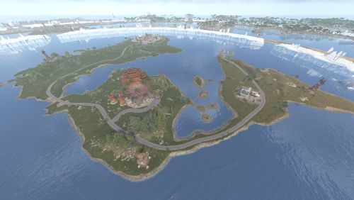 Iconic monuments like Launch Site, Military Tunnel, The Dome, Power Plant, and Oil Rigs are strategically scattered across the islands, while Fishing Villages and Underwater Labs fill the ocean with opportunities for trade, exploration, and naval warfare.
