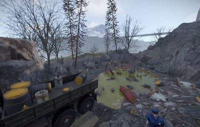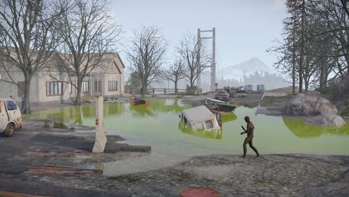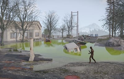 Now, scavengers and survivors roam the hollow ruins, hunting for whatever scraps were left behind. Rusted junkpiles dot the toxic riverbanks, some floating over it's surface, tempting scavengers with the promise of loot - if they can parkour across without touching the toxic water. But watch the shadows near the water… the ones who lived here once aren’t human anymore. The contamination changed them. Twisted them. And they don’t take kindly to trespassers.