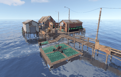 Custom Monuments Fishing Villages with vending machines from outpost and bandit camp