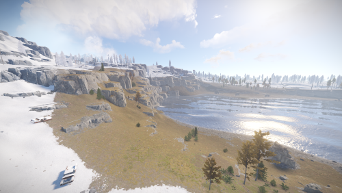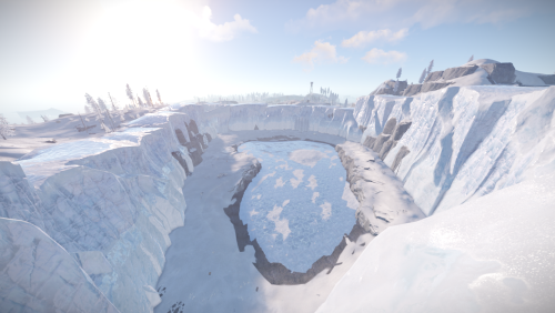 Map contains 4 unique custom made cabins for players to explore and build in + a large ice valley that can be an unique location for a town or just player bases.
