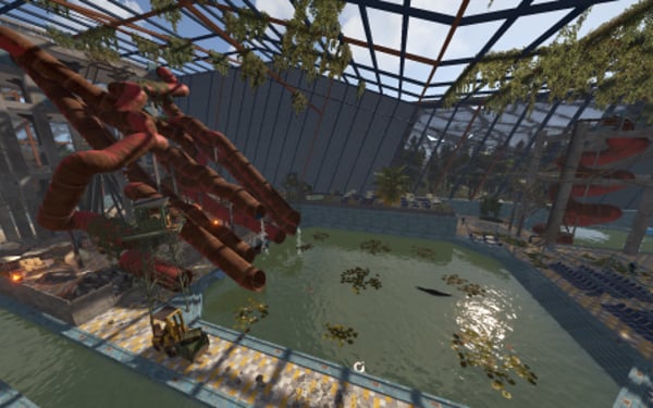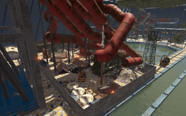 An incredible water park for your Rust server! If you want to add something truly unique and meticulously crafted to your map, this monument is the perfect choice. Countless hours and tremendous effort went into its creation to make it feel alive, exciting to loot, and worth exploring over and over again! Abundant decorations and a high level of detail will fully immerse players in the atmosphere of an abandoned water park. Derelict restaurants, shops, warehouses, service areas, and much more are crafted to the highest standard.