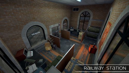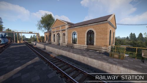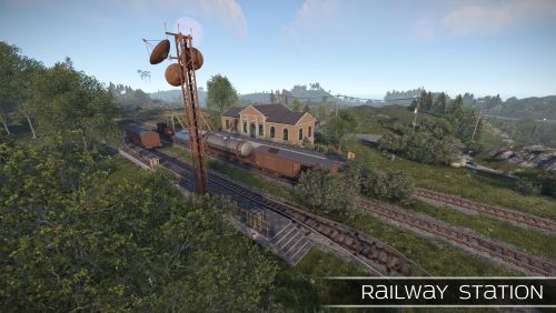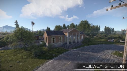 A scenic and functional train station with loot spawns and keycard-locked rooms for additional exploration.