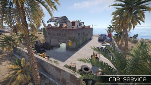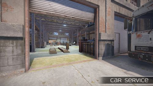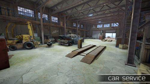 A full-featured car workshop where players can upgrade, repair, and loot car parts, with plenty of extra loot opportunities.