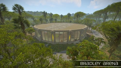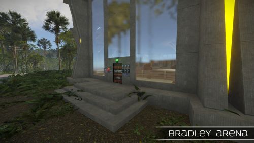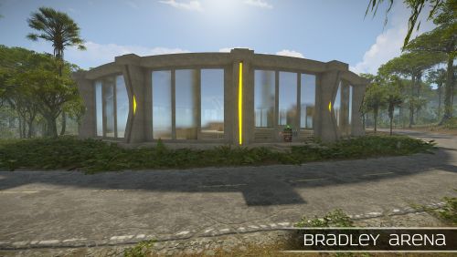 A large combat zone guarded by three Bradley APCs, with high-value loot at the center. Perfect for PvP battles and armored events.