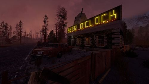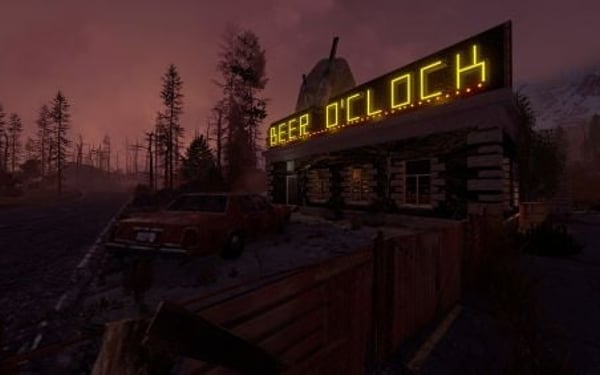 A small abandoned bar, in the middle of nowhere. Its lights are kept alive by solar panels, and its shelves are still packed with beer, waiting to be discovered.