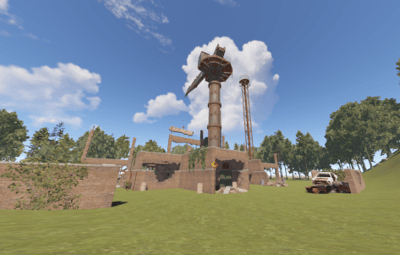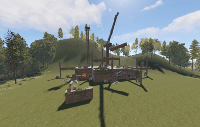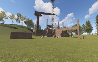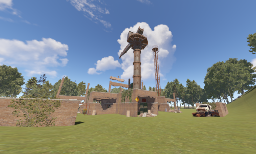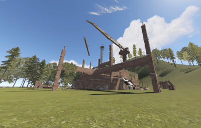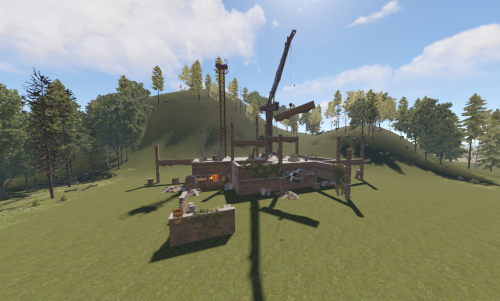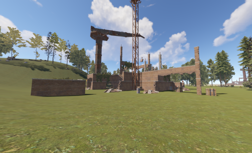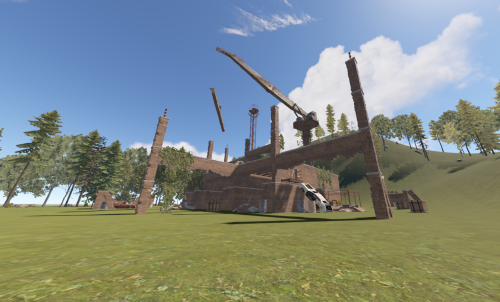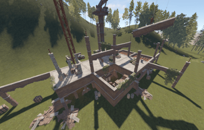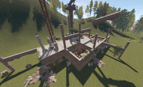 This is a building under construction that has been abandoned with loot scattered all over the two floors and crane.