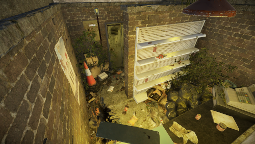 - Includes 2 Tan crates, 1 green, scattered barrels.