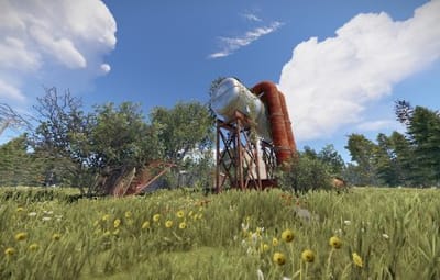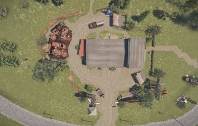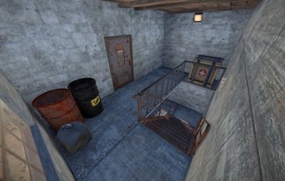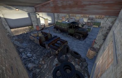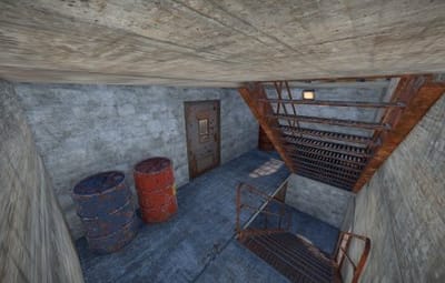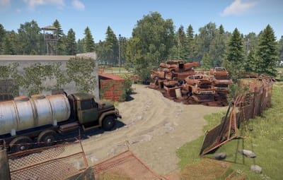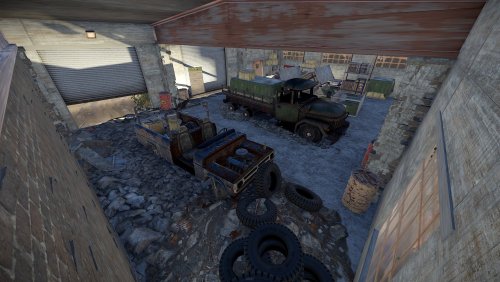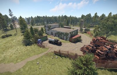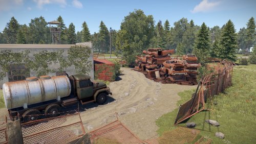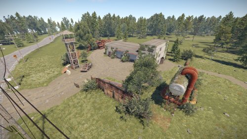 An abandoned location on which a building with an office area of three floors and a huge garage, in which there is a recycling facility, is located. In the office part of the building there are puzzles with a blue access card. On the territory, in addition to the main building, there is an observation tower, a small dump of old cars, a gas substation and a water cistern. A pipeline is stretched along the perimeter, and on the other side a fence, which has been destroyed in some places by time.