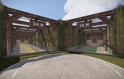 Enhance your aim with this versatile training field, featuring five distinct shooting ranges at 25, 50, 75, and 100 meters. Additionally, it offers a spacious area where targets are scattered across various angles, allowing you to challenge yourself with a wide range of shooting scenarios. The prefab has a total of 1522 assets.