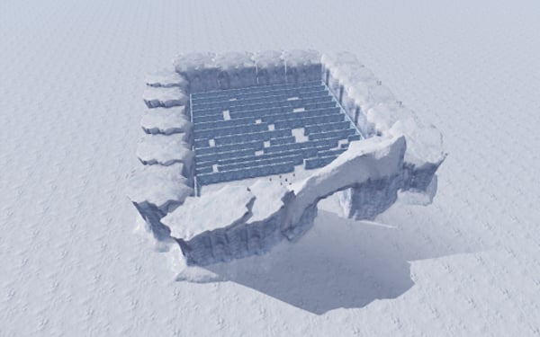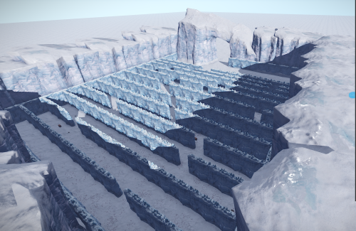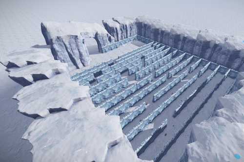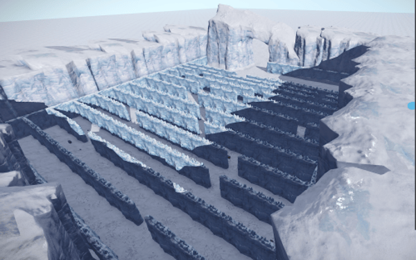 A large maze filled with a lot of loot and NPCs positioned above, shooting at players.