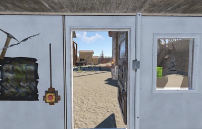 - Blue door on the surface