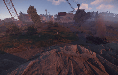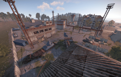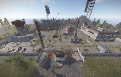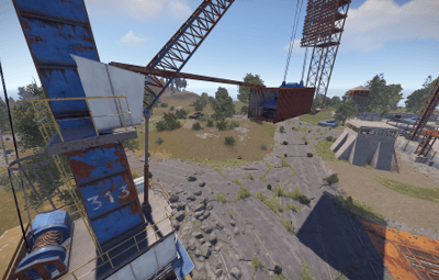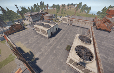 This is a top secret APC Factory run by Cobalt to supply launch site with Bradleys. The size of this monument is about as large as the main, non-rocket part of launch site. It is designed to work with launch site for larger maps or be a replacement for launch site on smaller maps. In the main area there are the watchtowers, office building, and the assembly building. In the testing area there is a crane jump puzzle, concrete observation tower, and blown up APCs. Along side these areas is the underground APC storage accessible in the office building. This underground area functions as the rocket building in normal launch site, requiring a red access level keycard and has three elite tier crates. Below is a video showing off the main puzzle and the crane jump puzzle.