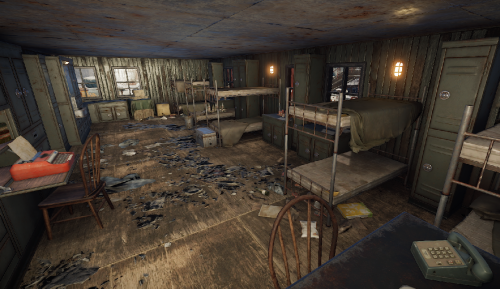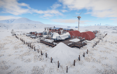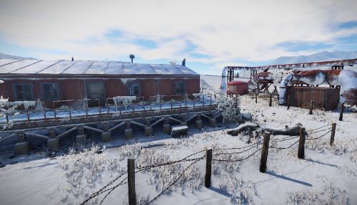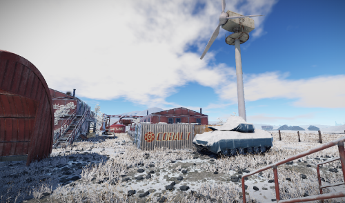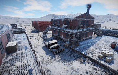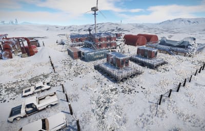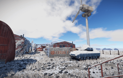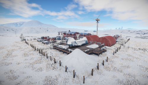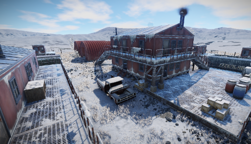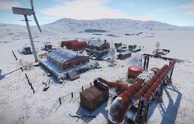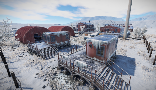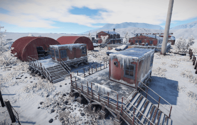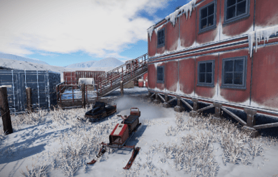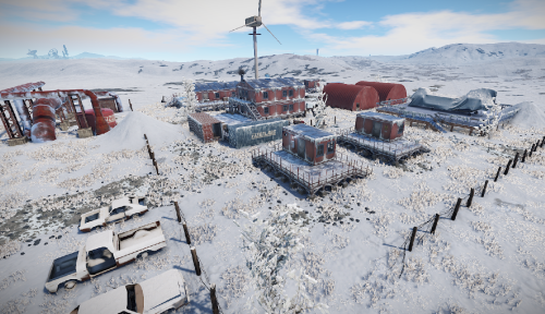 The Arctic Military Base in the dead of winter offers freely accessible loot a recycler and the rescued snowmobiles.
