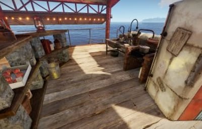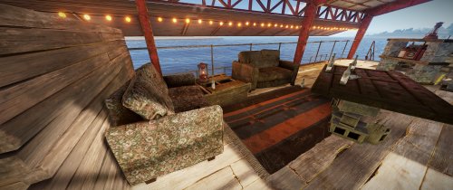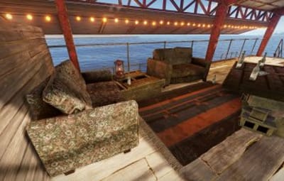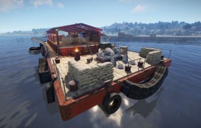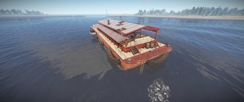 This monument comes in two versions: With and without NPCs (Scientists). The Bandit Barge is perfect to chill after raiding the oil rig or the container carrier. Loots are available for those who have the right key cards.