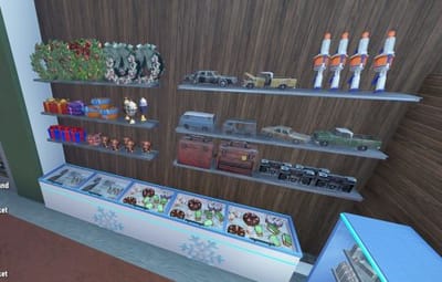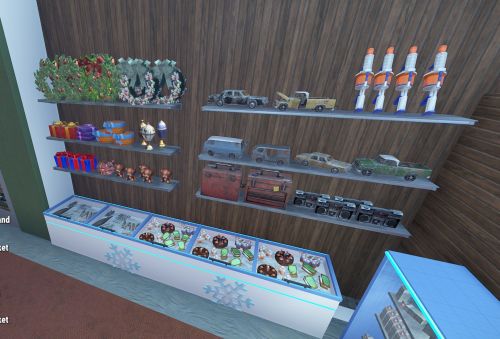 Despite the winter chill, the interior remains warm and inviting. Fireplace, sleds and few more winter details added.