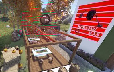 Stage Area with Burning Man Performance: Witness spectacular performances on the stage area, featuring the iconic Burning Man act.