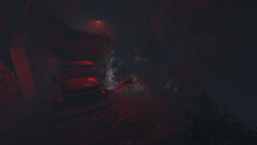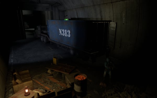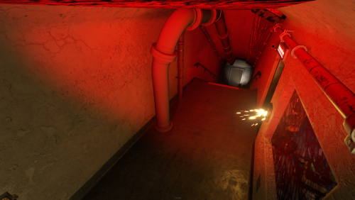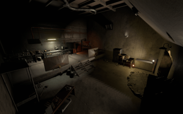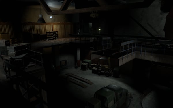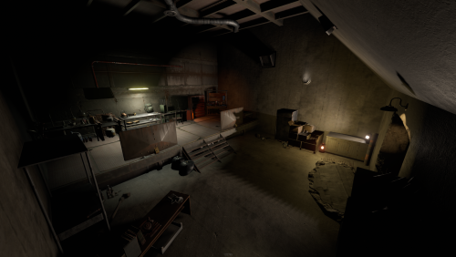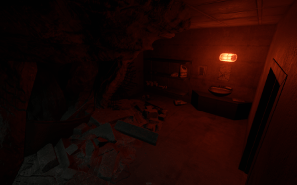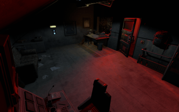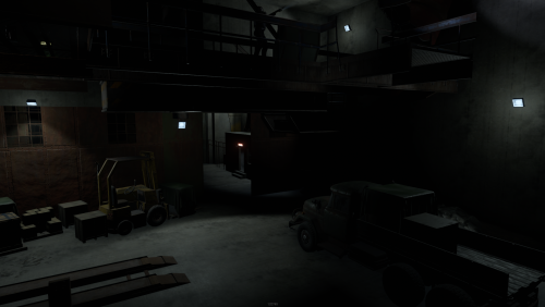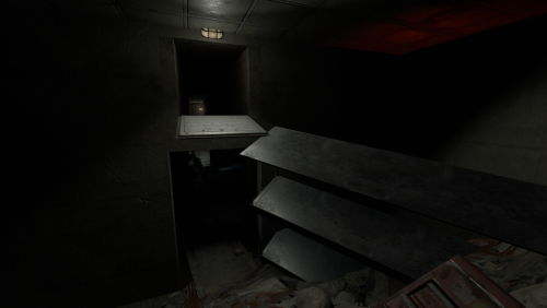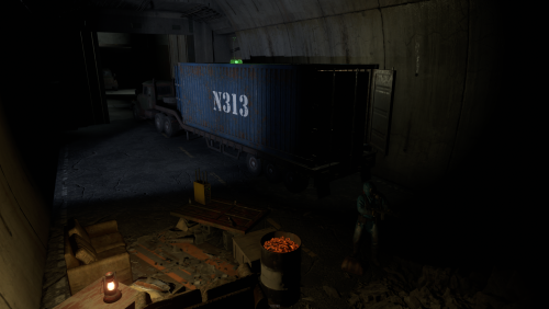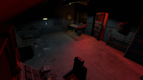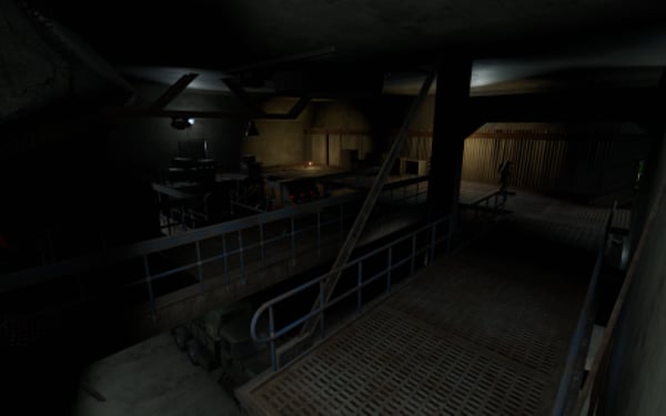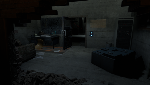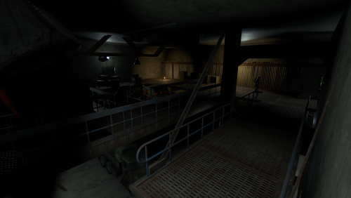 2 entrances, but to reach lower half you need blue key card, either you use easy elevator puzzle with card reader+switch mechanism, or descend through second entrance from surface. At the bottom half of the bunker you can use switches to lit the whole area, or leave it dimmed if you like to operate in the dark. Cctv Cameras placed all over bunker, 2 camera access stations. 1 room with radiation, 1 hidden room behind container doors, 1 easy puzzle using rf transmitter with "313" hz frequency.