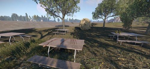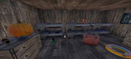 Best to place by a large lake on your map. No NPC's placed because they will just run off with adding them in rust edit. I use zombies on my server from Umod. Its free and called "Better Scarecrows". (still need to place them in rust edit) The players love the zombie vibe with the fog and all the cabins to look around in search of loot. There are 2 latrines, 1 mess hall, girls cabin, boys cabin, counselors cabin, shower Room and lots of trails through the forest to each.
