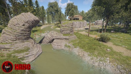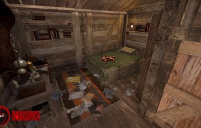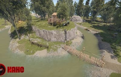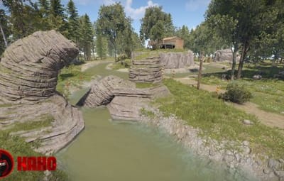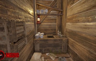 The Cannibal Cabin is a small house surrounded by a small lake.