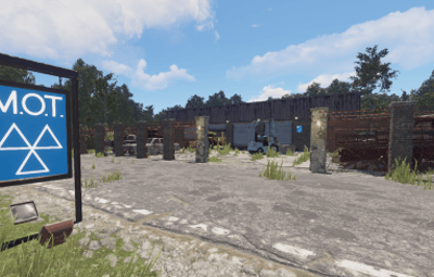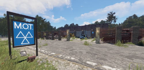 This monument is based on the real world MOT test (Ministry of Transport, or simply MOT) is an annual test of vehicle safety, road worthiness aspects and it carried out in garages across the UK. In this game version, you can find more car related loot than normal and also a working car ramp to modify your cars as well as a blue card puzzle with some nice loot and to top it off a red card spawn also now with a new addition hidden underground garage area with the owners project car. Includes MOT road sign prefab.