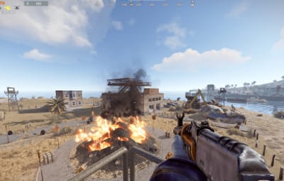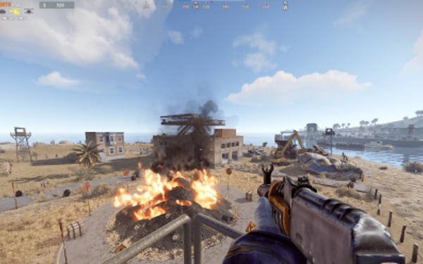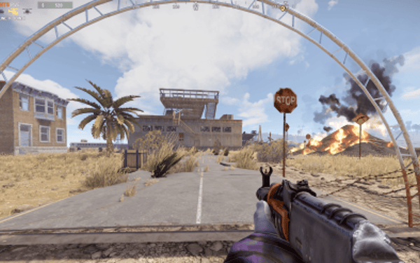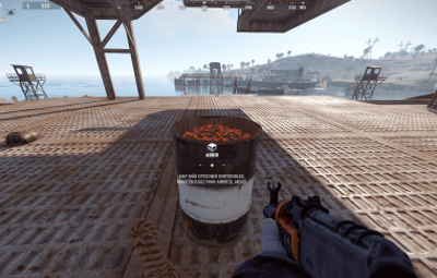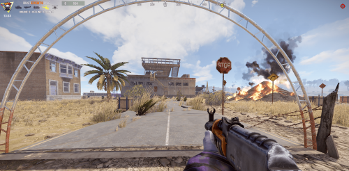 -Round: A pile of burning tires surrounded by boxes and lootable road signs.