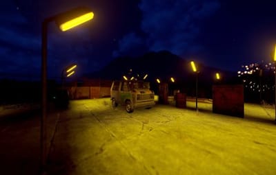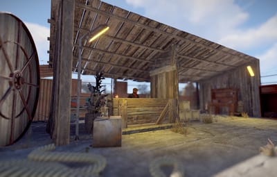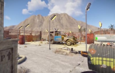 This is a car shop monument with a car lift and a place for a car vendor NPC.